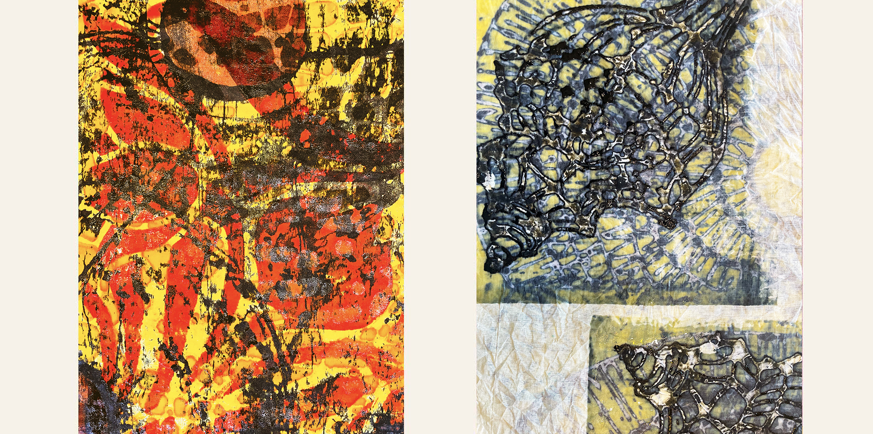 My journey started many years ago when I studied and practiced printed textiles at university, you will see much influence in my work from this time.